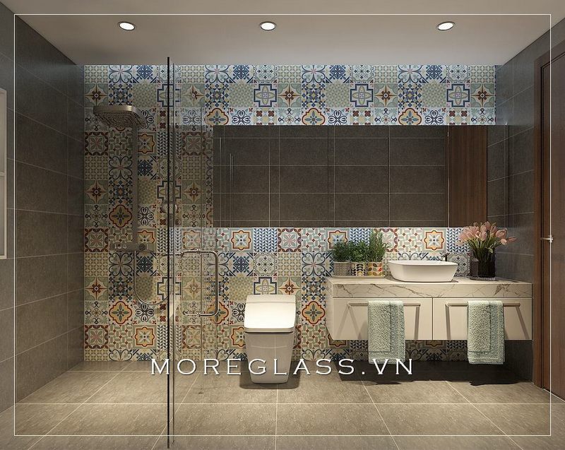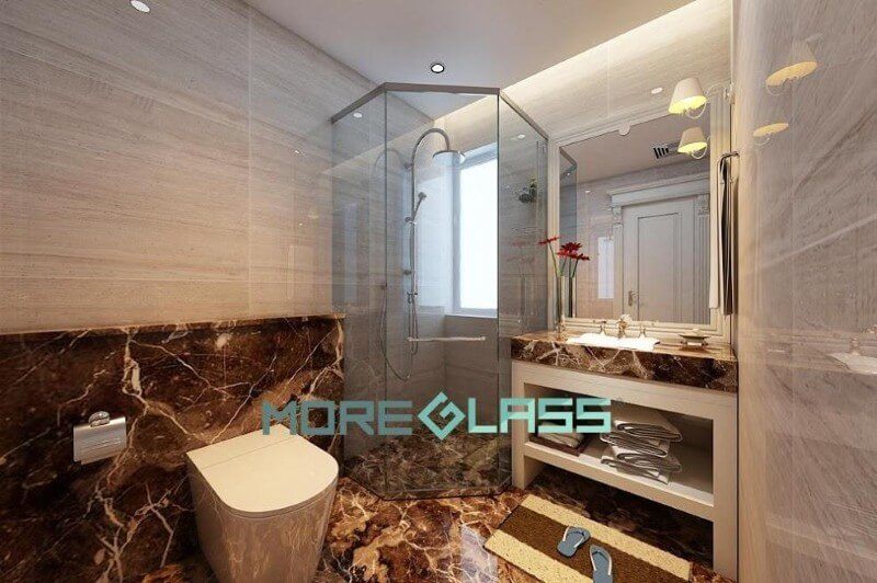 Mẫu phòng tắm MG-009 cho phòng tắm nhỏ đơn giản mà độc đáo với vách tắm kính 135 hiện đại, gương soi cốt bỉ cao cấp.