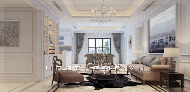 Thiết kế nội thất phòng khách phong cách tân cổ điển sang trọng, cao cấp
