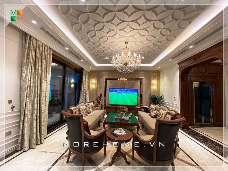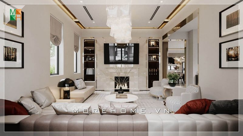 Thiết kế phòng khách biệt thự theo phong cách tân cổ điển sang trọng, đẳng cấp