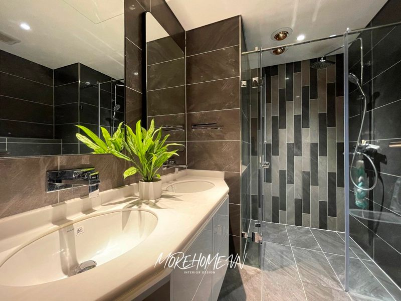 thi công không gian phòng tắm sang trọng theo phong cách hiện đại tối giãn