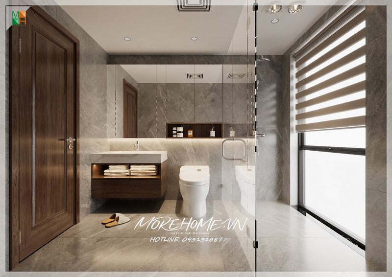 Mẫu thiết kế phòng tắm chung cư với nội thất vệ sinh cao cấp tạo nên không gian sang trọng, đẳng cấp