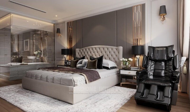 Thiết kế nội thất giường ngủ Master cao cấp phong cách tân cổ điển đầy sang trọng