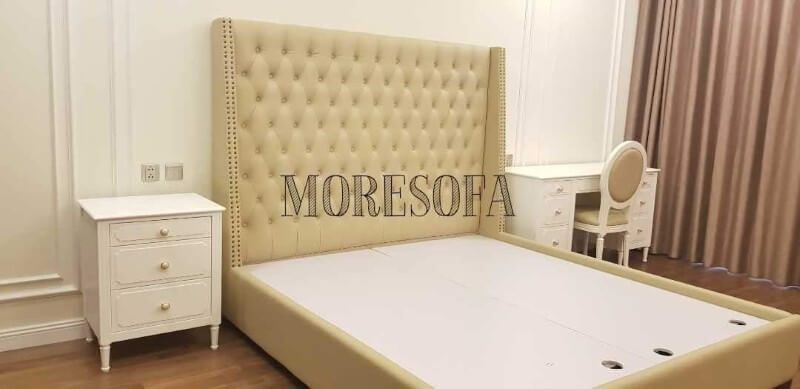 Mẫu giường ngủ bọc da tân cổ điển nhẹ nhàng được nhiều khách hàng yêu thích và lựa chọn nhiều