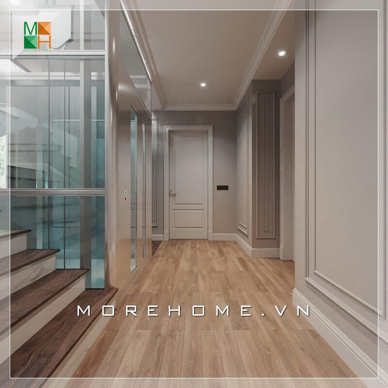 Bố trí nội thất phòng ngủ tân cổ điển sang trọng, thông thoáng với hệ cửa đầu giường giúp không gian luôn được thông thoáng.