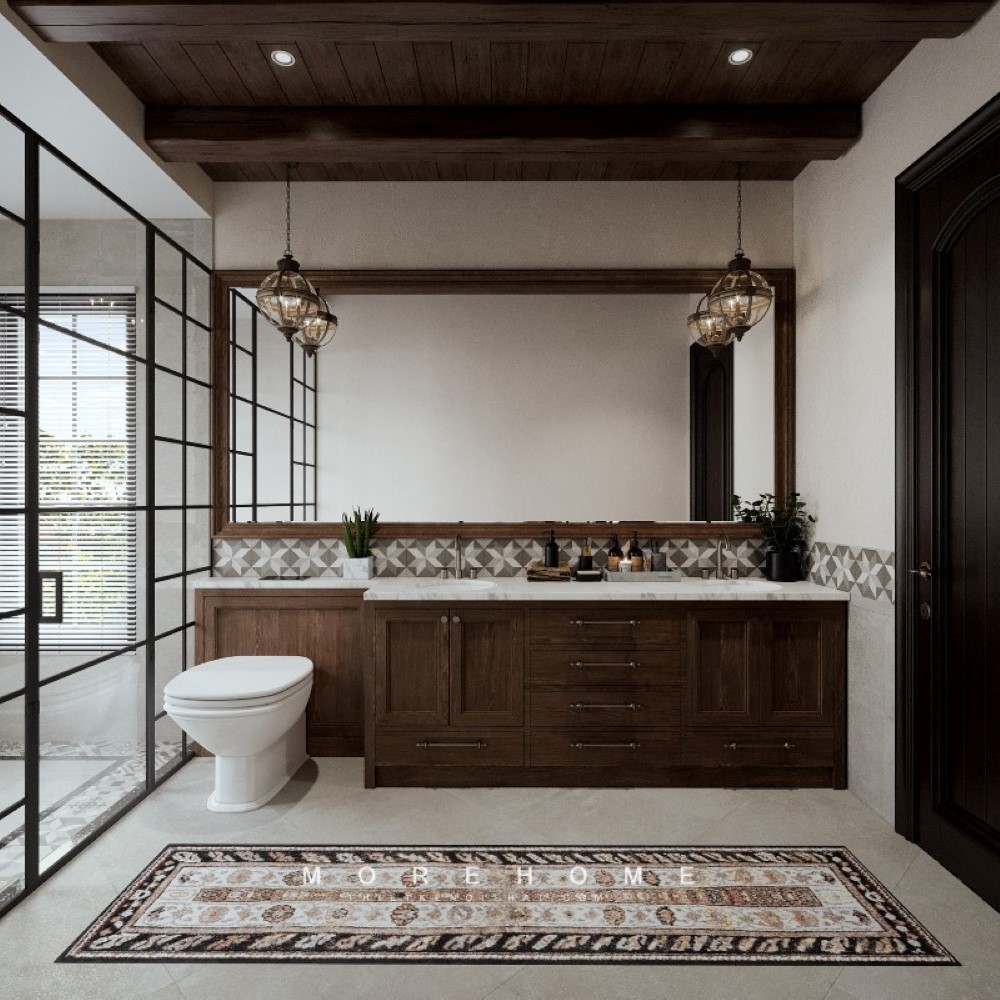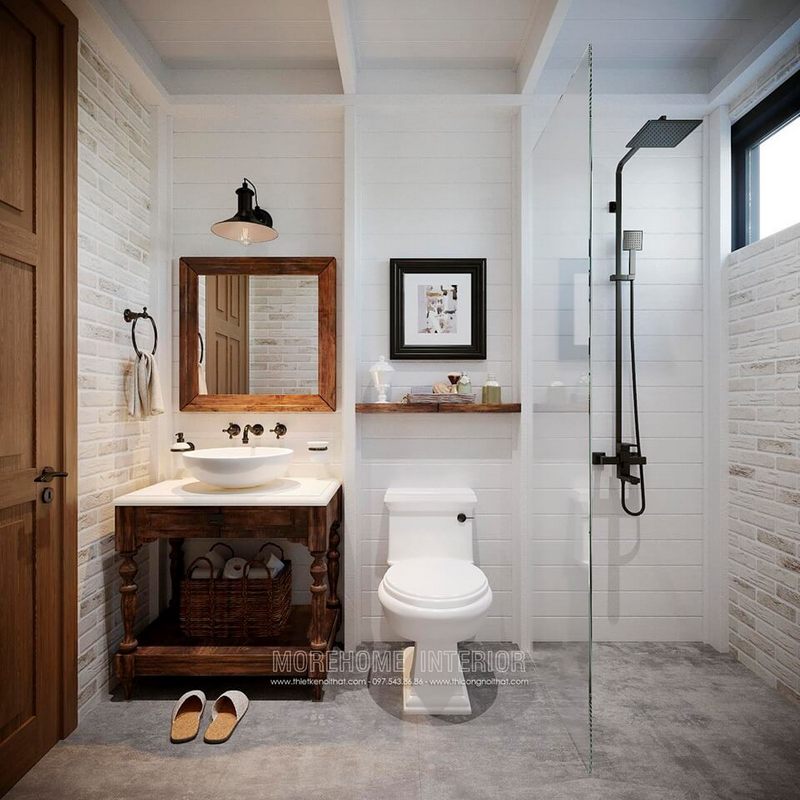 Phòng tắm nội thất trang trí tiện nghi hỗ trợ tốt cho quá trình sử dụng của gia chủ hằng ngày cũng thể hiện gu thẩm mỹ cao cho không gian