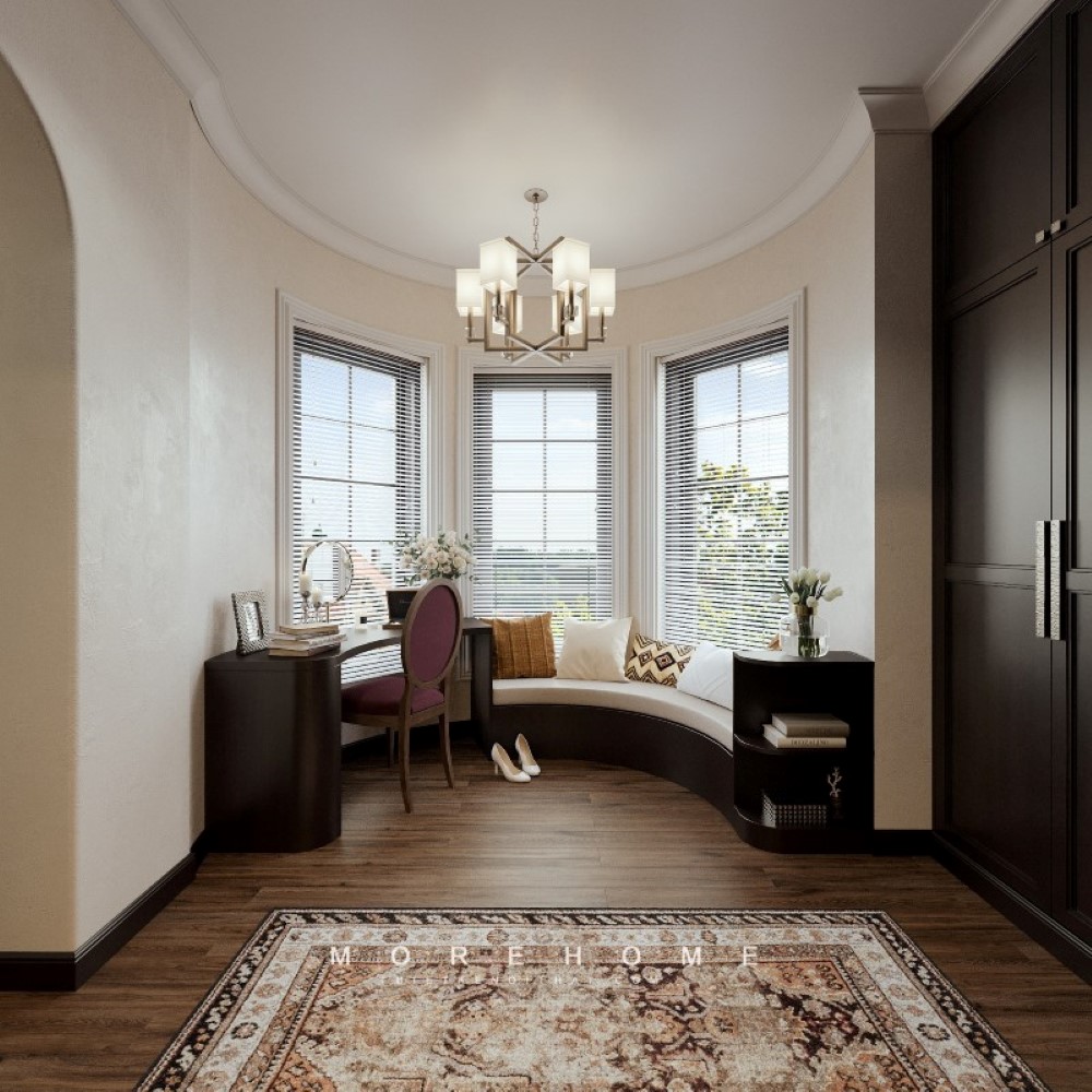 Kệ decor gỗ óc chó tân cổ điển đường cong mềm mại uyển chuyển trí cho không gian thẩm mỹ