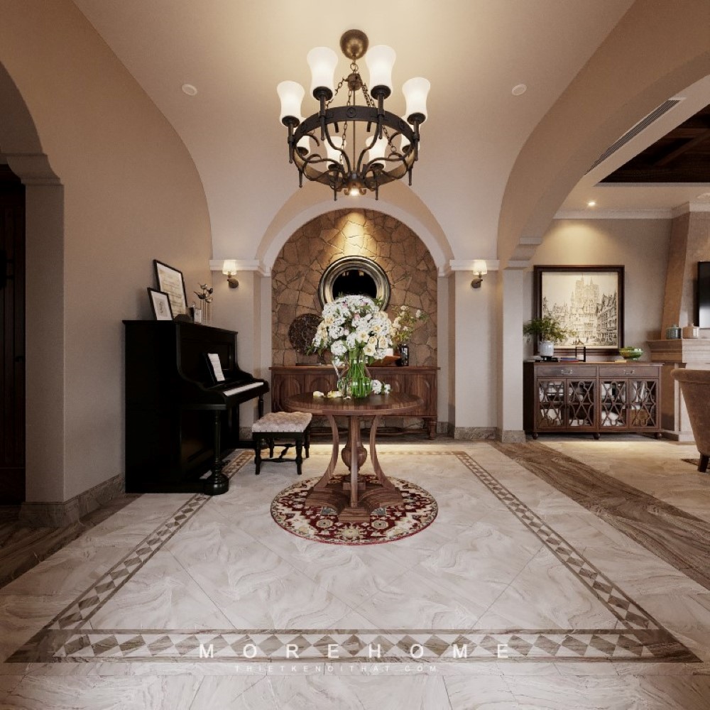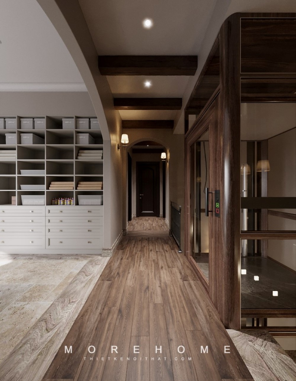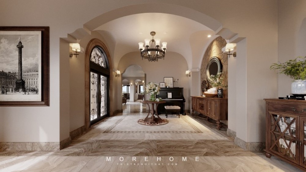 Nội thất hành lang tầng được trang trí mang phong cách địa trung hải sự mộc mạc, giản dị gần gũi với thiên nhiên