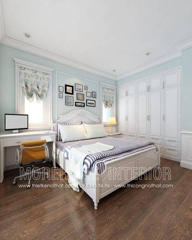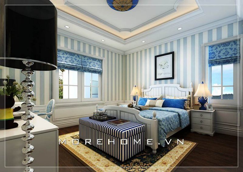Thiết kế giường ngủ con trai phong cách tân cổ điển tại biệt thự cao cấp
