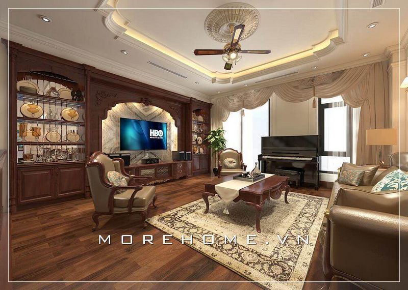 Để đặt sản xuất mẫu kệ tiv gỗ óc chó đẹp cho phòng ngủ tân cổ điển, vui lòng liên hệ Morehome để được tư vấn và báo giá