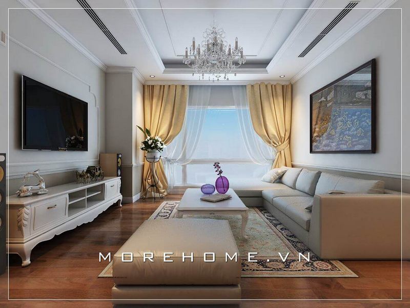 Kệ tivi màu trắng chân gỗ tân cổ điển thiết kế phù hợp với bộ sofa đẳng cấp