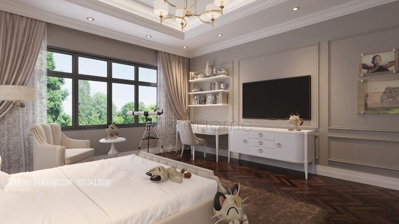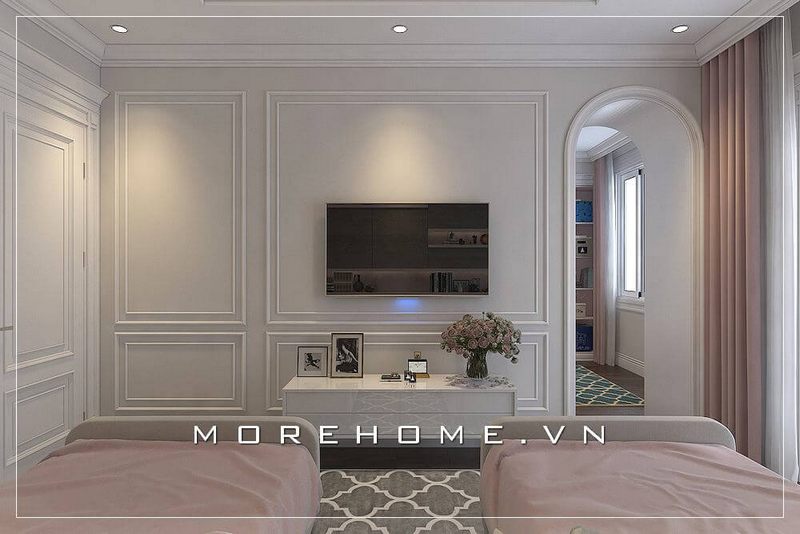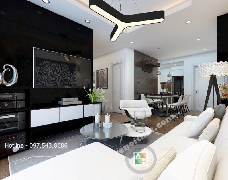 Với diện tích hạn chế của những căn hộ chung cư, việc lựa chọn mẫu kệ ti vi màu trắng nhẹ nhàng, đơn giản giúp cho không gian thêm rộng và thoáng hơn