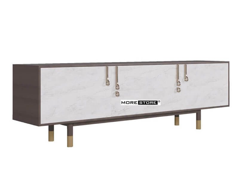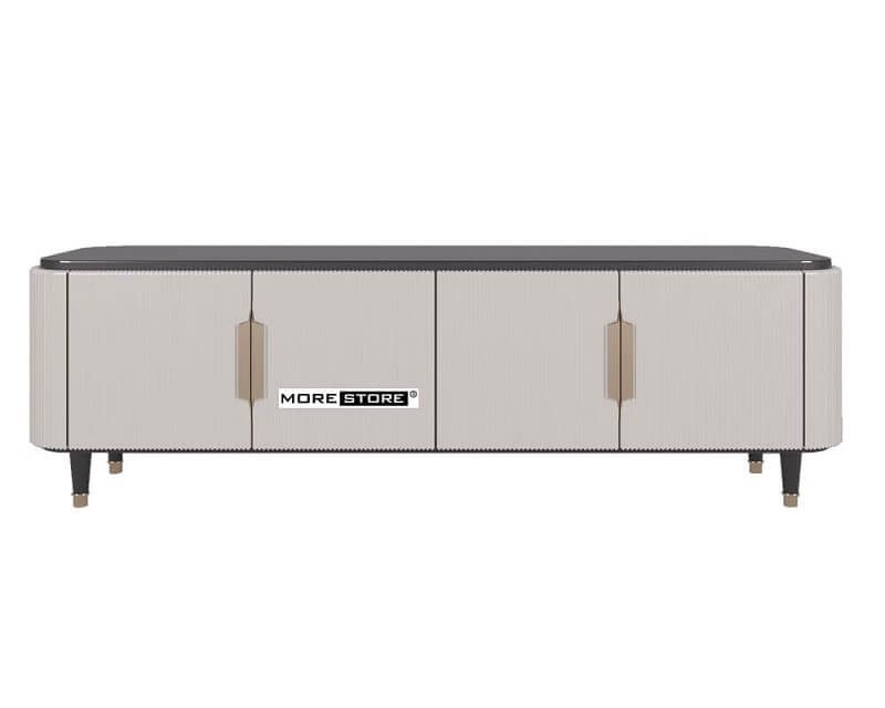 Mẫu kệ ti vi cao cấp với phần chân cách điệu mang đến cảm giác nhẹ nhàng, sang trọng và cuốn hút ánh mắt của bất cứ vị khách nào.