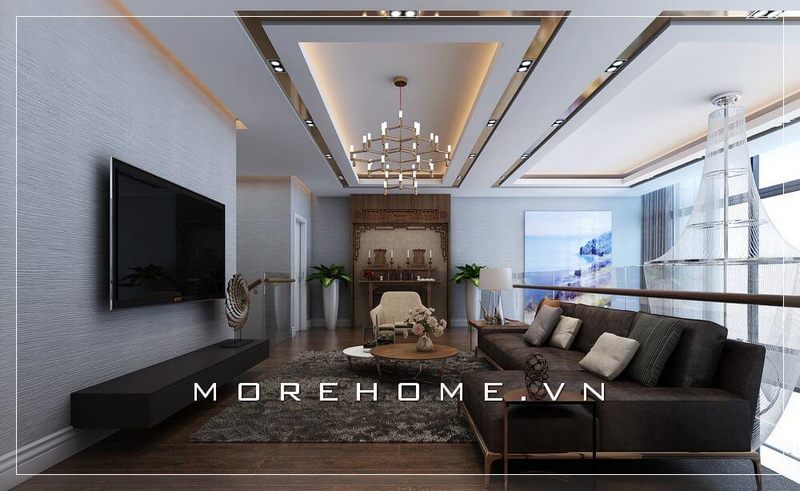 Không gian phòng khách sang trọng với kệ ti vi hiện đại