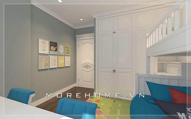 Tủ quần áo gỗ tự nhiên sang trọng và tinh tế tại phòng ngủ 2 bé trai