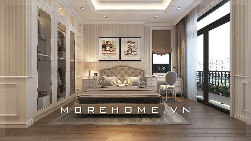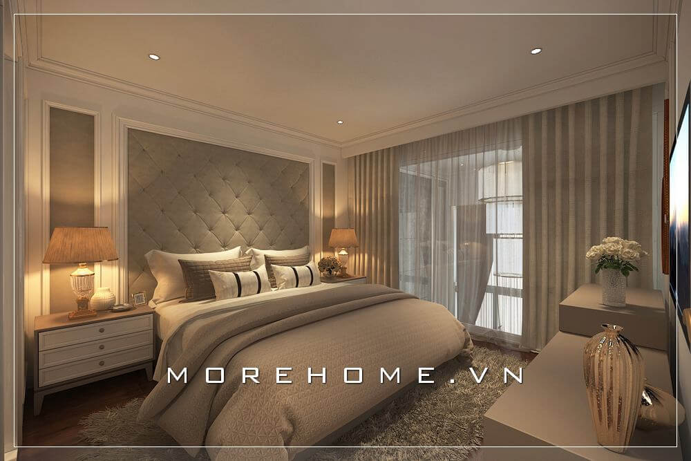 Mẫu giường ngủ chung cư phong cách tân cổ điển sang trọng và đẳng cấp, đúng với sở thích của gia chủ