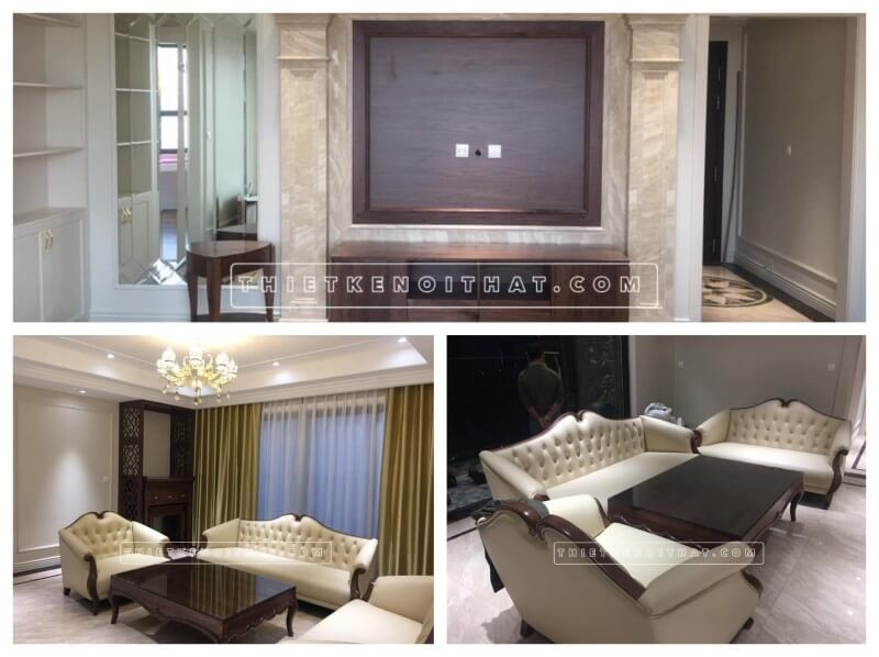 Chúng tôi sẽ thi công nội thất cho phòng khách cổ điển sang trọng với những đường nét, họa tiết rất ấn tượng.