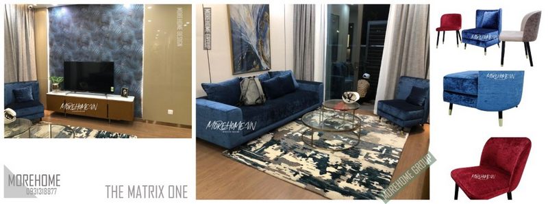 Bộ sofa chân sắt bọc nhung màu xanh coban hiện đại thoải mái tiện nghi khi sử dụng, thẩm mỹ cao cho không gian sang trọng cao cấp.