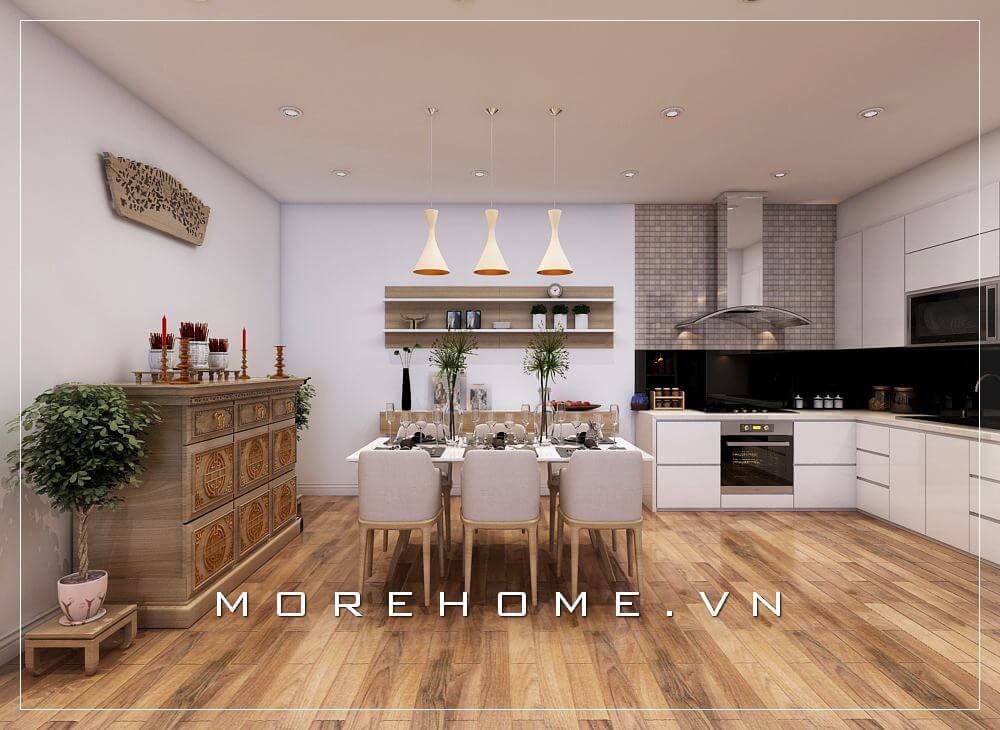 Trang trí nội thất phòng bếp chung cư sang trọng và tiện nghi