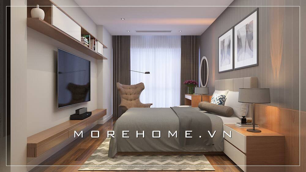Giường ngủ chung cư với lối thiết kế đơn giản, hiện đại phù hợp đúng với công năng sử dụng của gia chủ