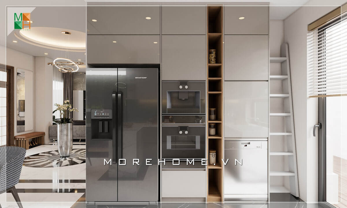 Biệt thự là không gian nhà có diện tích rộng, mang vẻ sang trọng, vì vậy mọi không gian trong nhà đều được chú tâm và có mức độ đầu tư. Thiết kế phong cách tủ bếp cũng cần phải hài hòa với thiết kế của ngôi nhà tùy vào từng kích thước của căn nhà, phong cách của gia chủ. Để hiểu rõ hơn về công dụng và mức độ tiện nghi của tủ bếp. Morehome mời bạn ngắm nhìn các mẫu thiết kế tủ bếp biệt thự đa năng và tiện nghi trong bài viết sau đây nhé!