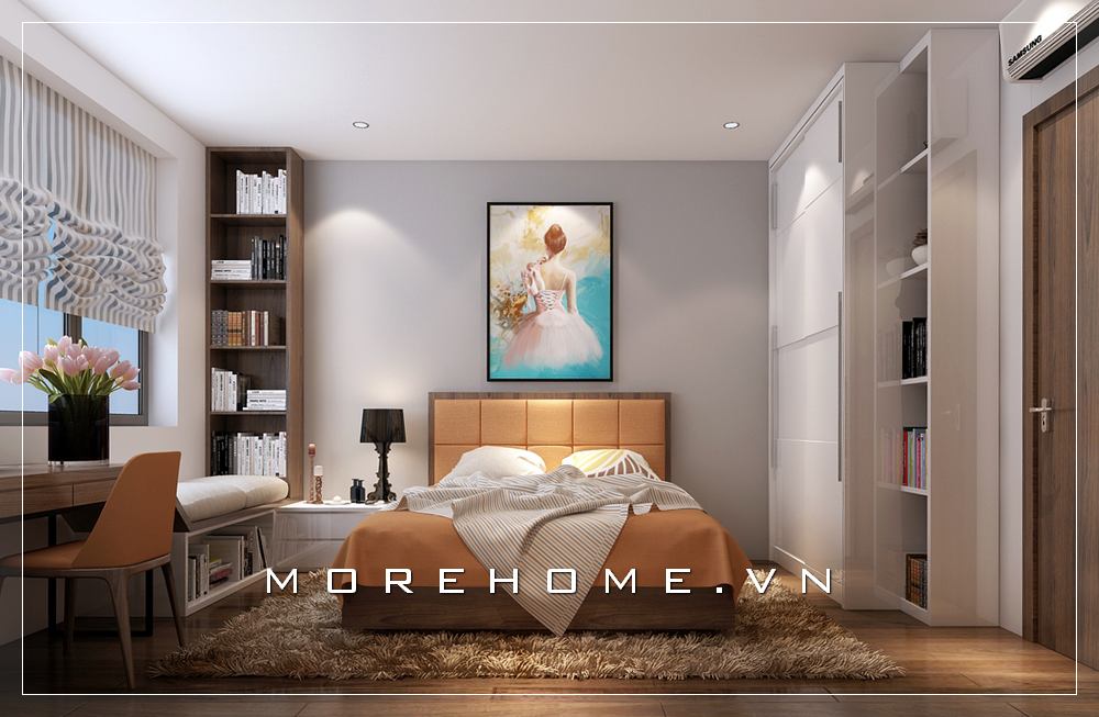 Thiết kế nội thất phòng ngủ chung cư sang trọng, tiện nghi với giường ngủ bọc nỉ đầu giường ấn tượng