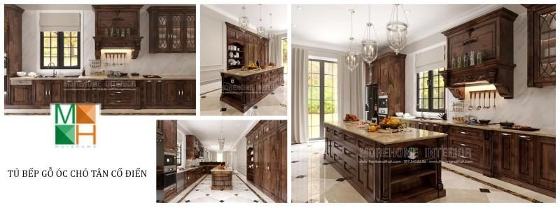 Thiết kế tủ bếp biệt thự cao cấp phong cách tân cổ điển sang trọng